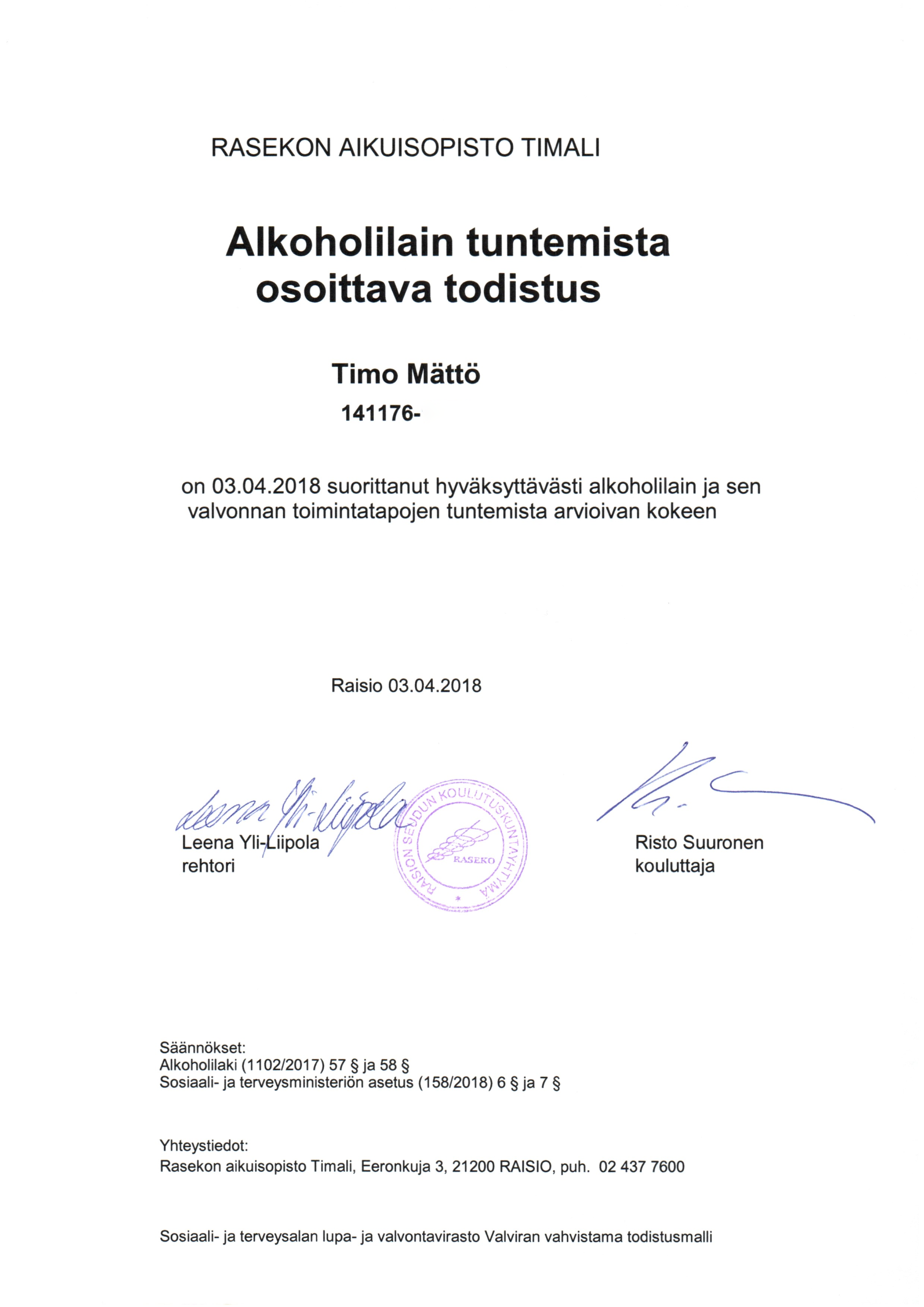 (Linkki todistukseen)01/2002 - 08/2004Linja-autonkuljettajan ammattitutkinto
