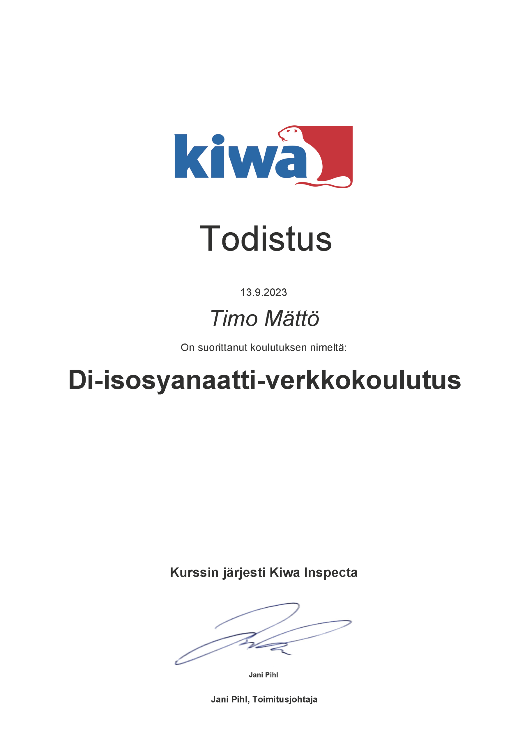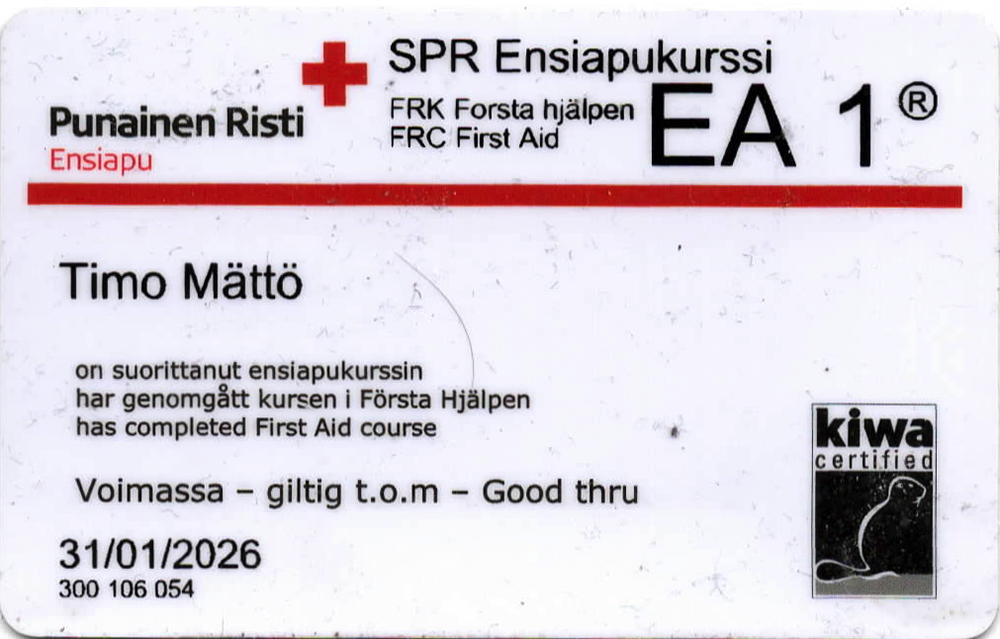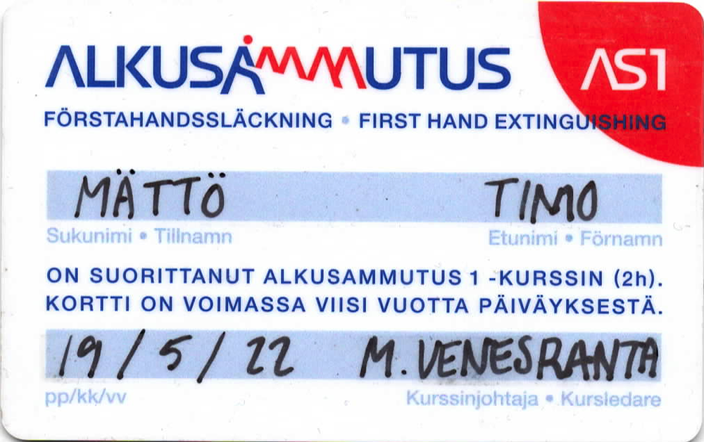 Kurssia ei suoritettu loppuun koska lähdin töihin Eurooppaan. Osallistuin myöhemmin uudelleen vastaavalle kurssille ja suoritin ammattitutkinnon.