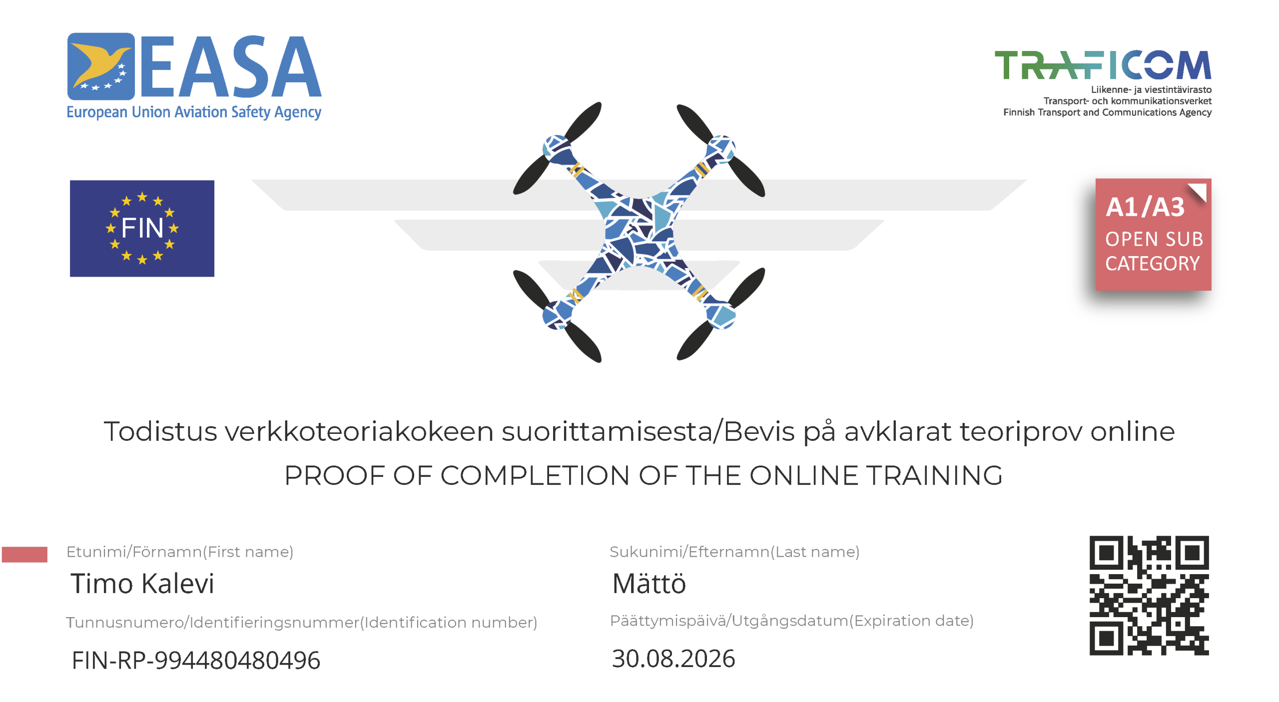 Kurssi on käyty loppuun mutta tutkintoa ei ole suoritettu loppuun koska olin koko ajan töissä Euroopassa.