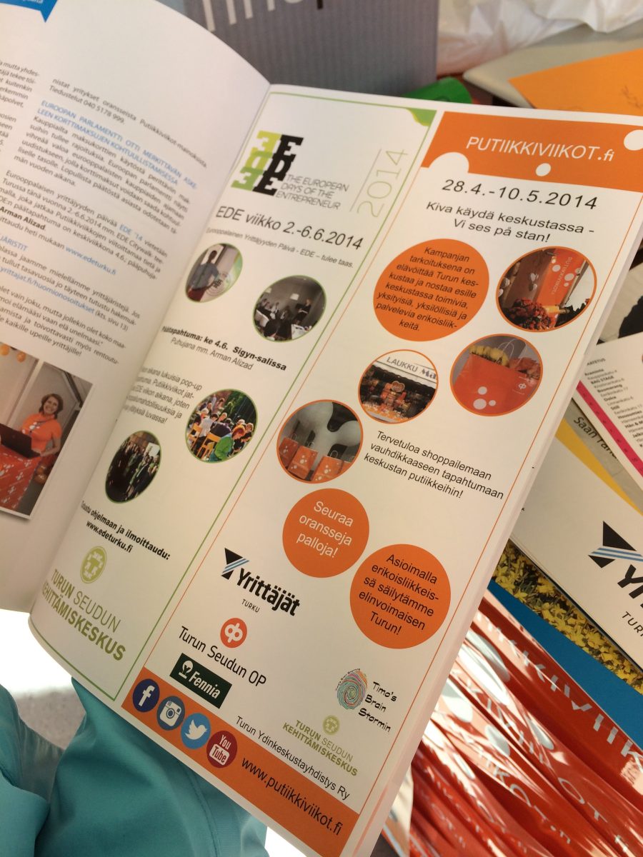 Markkinointiviestinnän koulutukseen liittyvä työharjoittelu jonka suoritin Turun Yrittäjät Ry:llä. Putiikkiviikot 2014. Uudistin kaikki printtimateriaalit koska vanhat oli kopioiden kopioita. Kuvasin myös mukana olevista yrityksistä pienet esittelyvideot jotka laitettiin YouTubeen sekä sosiaalisenmedian eri kanaviin. Pidin yllä myös tapahtumapaikkaa joka oli tyhjillään oleva liiketila Eerikinkadun ja Kristiinankadun kulmassa, jossa eri yritykset pääsivät aina päiväksi esittäytymään.